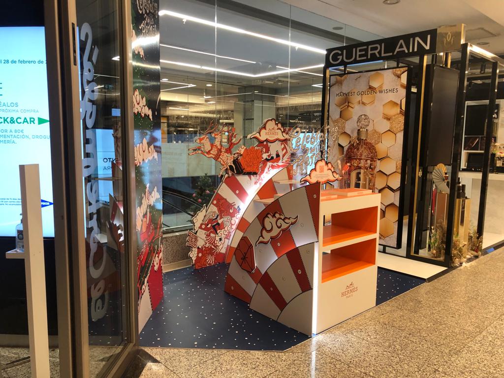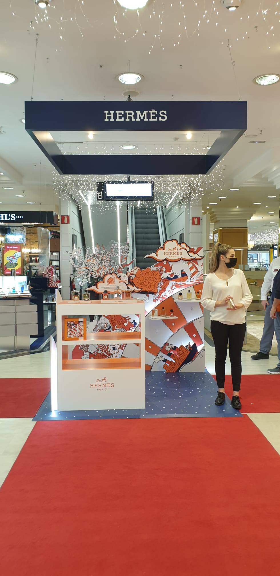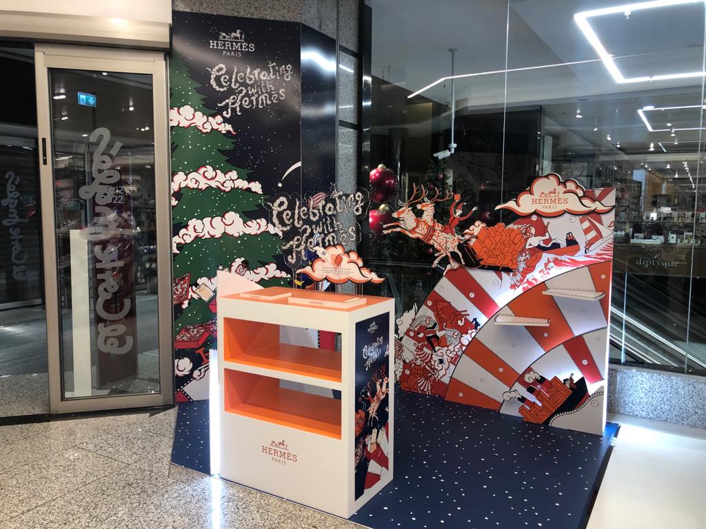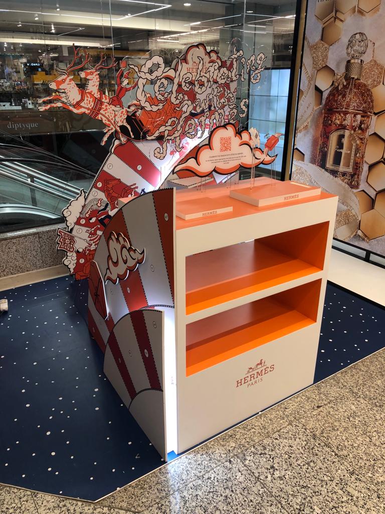 Fabricación de stand promocional Fetés en Hermès para la campaña de navidad 2021.
